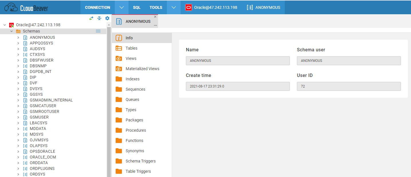 我们推荐使用 CloudBeaver 作为 Oracle 数据库的 Web 管理平台: